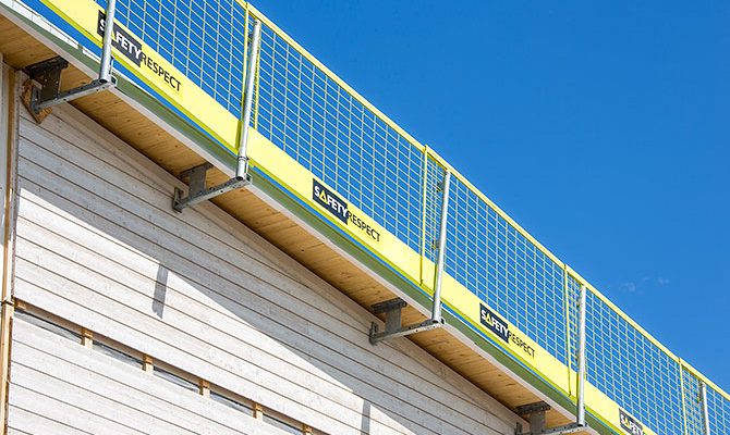 Eğik çatılarda düz çatı braketi bağlantı ekipmanı olarak kullanılır. Kenar koruma sistemi ve cephe arasındaki mesafe yapılan işin gereksinimine göre ayarlanabilir ve daha fazla çalışma alanı sağlanır. Braket çatıya direk bağlanır.